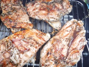 I lit upon this “delectable”, when searching for something unique to take to a church picnic on Vancouver Lake, in Washington. It wasn’t possible to roast a loin of lamb over our small portable grill, so I quickly substituted chicken breasts for the kebob’d (or tied) mutton loin; the end result pleased the crowd immensely.