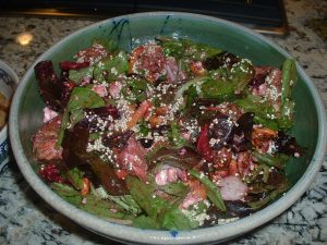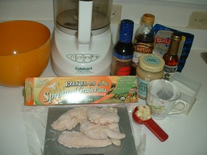 6 thigh/leg parts (Our local Fred Meyer sells seasoned thigh/leg pieces at the meat counter, but you will want to ask for unseasoned ones, for $1.29/lb. They also carry a pre-packaged Heritage Brand, with 4-5 pieces in a package for $1.09/lb.)