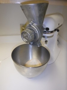 If grinding flour fresh, do so now; see photo.