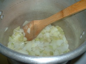 - In a skillet, melt butter or ghee. Add onions and cook until they just begin to turn a golden color-see photo below.