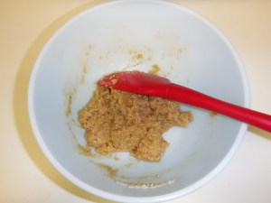 Add melted butter; blend with a spatula, until all dry ingredients are incorporated (mixture will be moist-see photo).